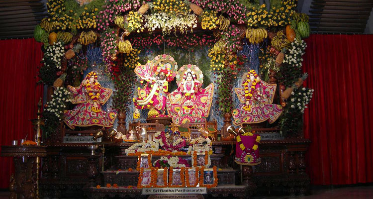 The main deities worshipped at ISKCON Temple Delhi are Sri Sri Radha Parthasarathi (Radha-Krishna), along with other important incarnations of Lord Krishna like Lord Rama, Lord Narsimha, and Lord Chaitanya Mahaprabhu. ISKCON Temple Delhi is not just a place of worship but also a cultural and spiritual center. Daily activities include prayers, bhajans (devotional songs), aarti ceremonies, and discourses on Vedic scriptures. The temple is located in East of Kailash, South Delhi, not far from the Lotus Temple and Nehru Place.