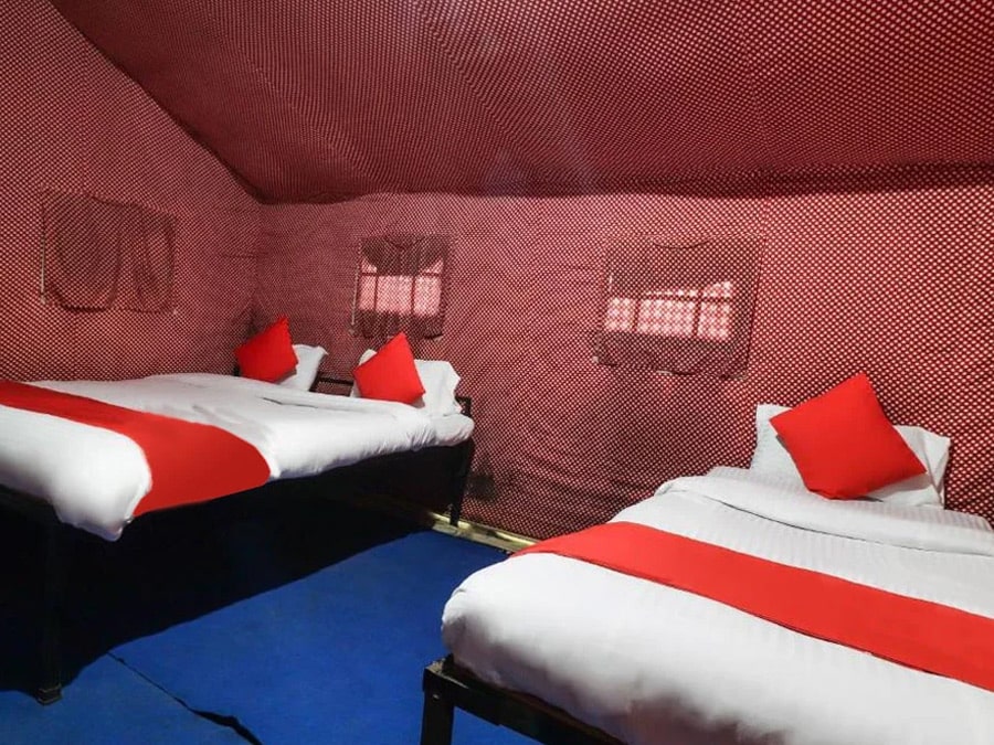 The Jayshee Camp – Kanatal is located 12 kilometers from Kanatal’s center and provides a unique camping experience in the Himalayas. The resort consists of 11 Swiss Luxury Camps, 11 Bamboo Cottages, and 6 rooms. All camps have attached washrooms with running water and sufficient bathroom facilities, as well as 24-hour power backup.