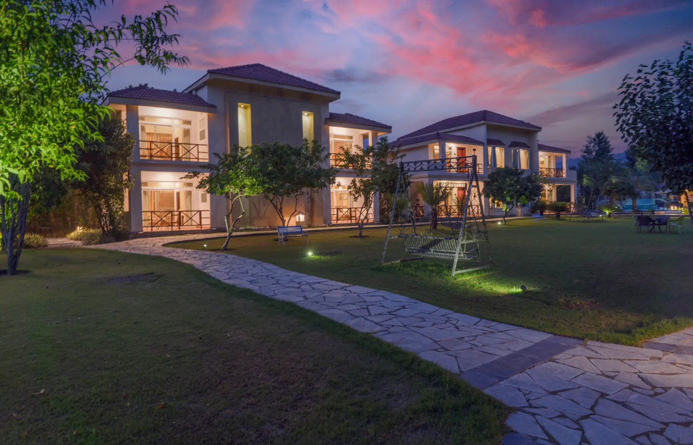 Corbett’s Resort De Coracao, a heavenly weekend getaway spot near Delhi, is one of Jim Corbett’s beautiful resorts. It is just 7 kilometers from Jim Corbett National Park and close to the Dhela and Jhirna Safari Zones. This resort offers villas that can be classified as Luxury villas, Premium Cottages, Club Cottages, and Family Cottages.