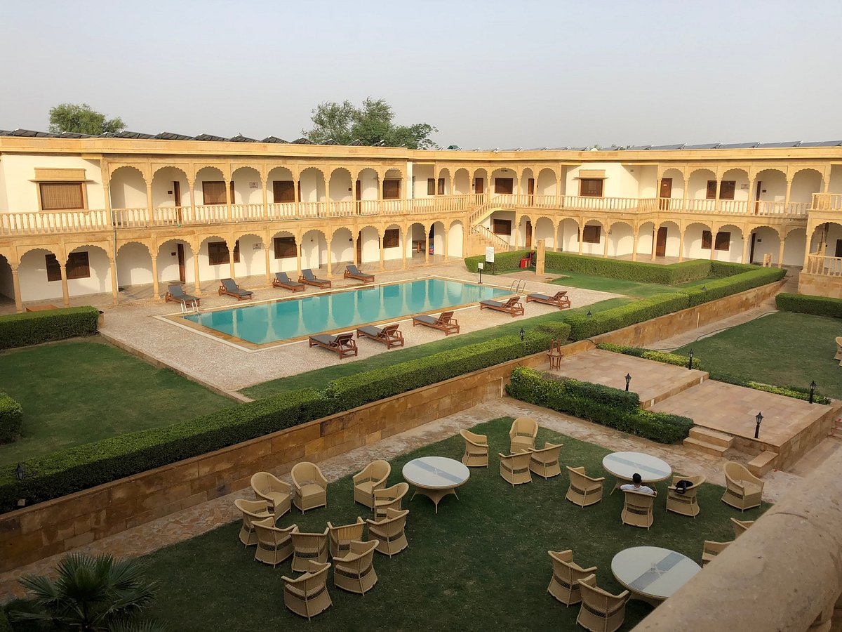 Lal Vilas Resort is in Neemrana, between Delhi and Jaipur. Within a 100 km radius of Delhi, you get to enjoy the stunning surroundings and rich heritage of Rajasthan, making it the perfect place for a memorable vacation. The resort is ideal for weekend getaways, family holidays, and business events. The hotel has attractively furnished rooms, a well-maintained swimming pool, and modern conveniences for a comfortable stay.